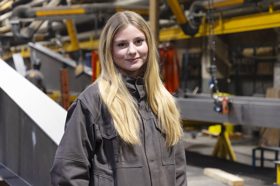 Jeg lærte DS at kende igennem en klassekammerat, Clara, som også er i lære som smed på DS Stålkonstruktion. Jeg hørte rigtig godt om forholdene og menneskerne her. Jeg skulle så i praktik, og jeg så det som en oplagt mulighed at komme på DS. Som pige følte jeg mig velkommen her, og der var ingen, som stillede spørgsmål eller gav mig underlige blikke. Jeg kunne mærke, at DS var det rette sted for mig.